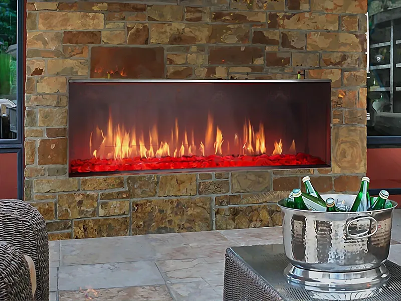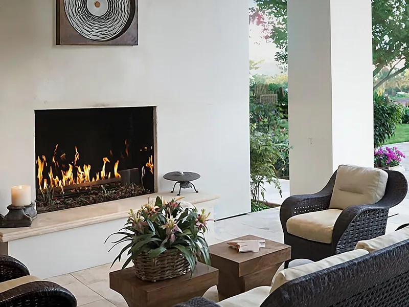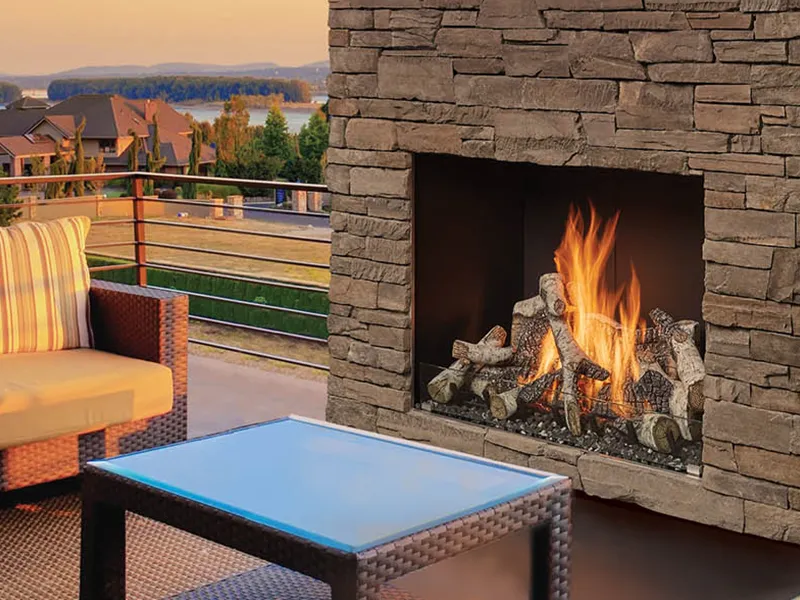 Many outdoor options are available: wood burning fireplaces, indoor/outdoor gas fireplaces, and gas fireplaces in a variety of styles and sizes, with some that don't require any venting!